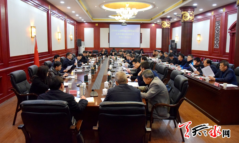 天天天水网讯【全媒体记者 童强】 3月22日,市委常委、宣传部部长张建杰主持召开2019年公祭伏羲大典暨第30届天水伏羲文化旅游节筹备工作协调会,通报2019年公祭伏羲大典暨第30届天水伏羲文化旅游节总体方案,安排部署节会筹备各项工作。张建杰强调,各级各有关部门要统一思想,细化任务,靠实责任,全力推进节会筹备各项工作落实。