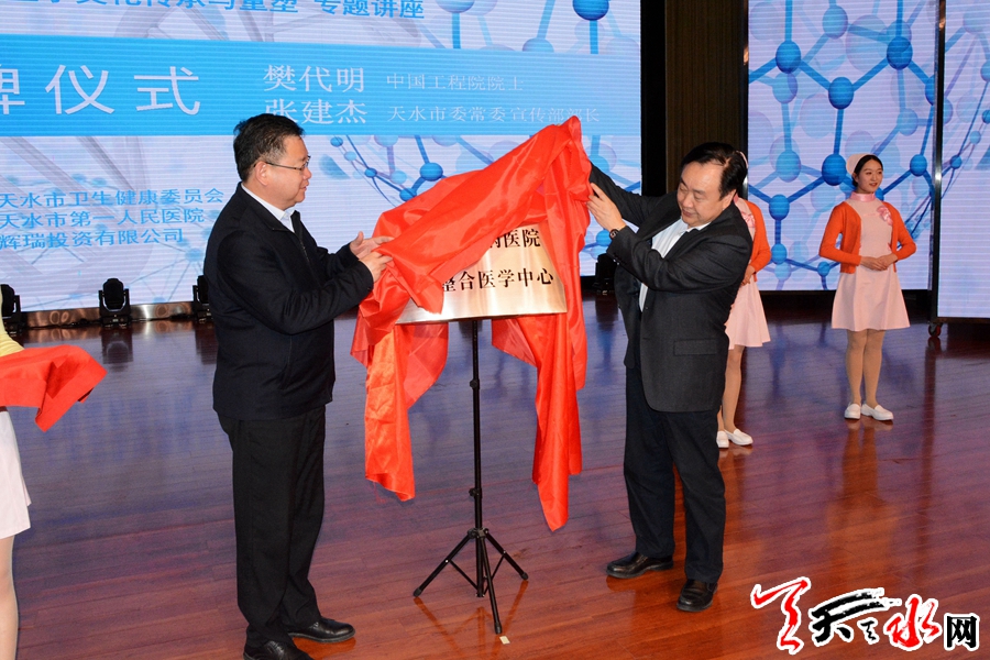 市委常委、宣传部长张建杰和樊代明院士共同为“西京消化病医院天水整合医学中心”揭牌。副市长逯克宗致辞。