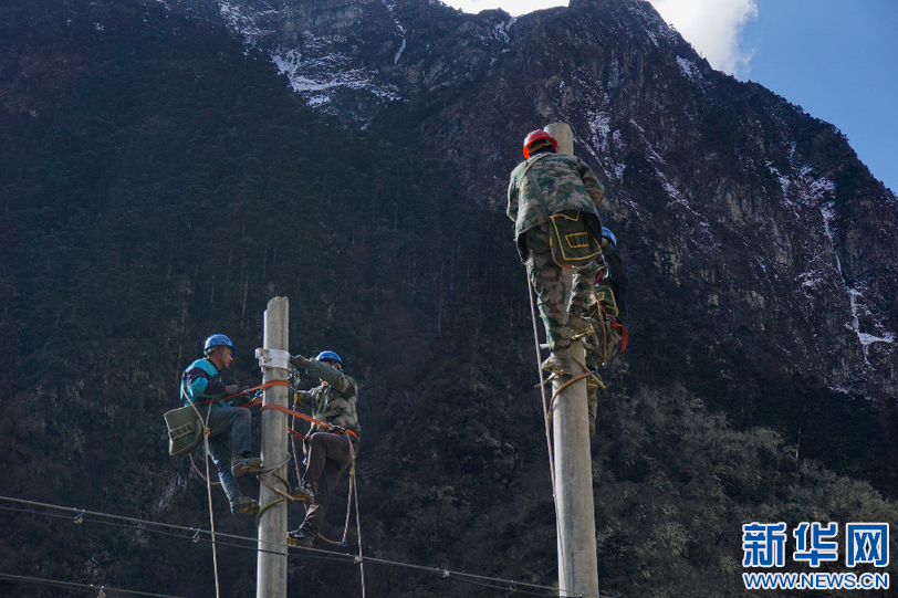 工人在玉麦乡境内施工(2017年12月17日摄)。新华社发(白峰 摄)