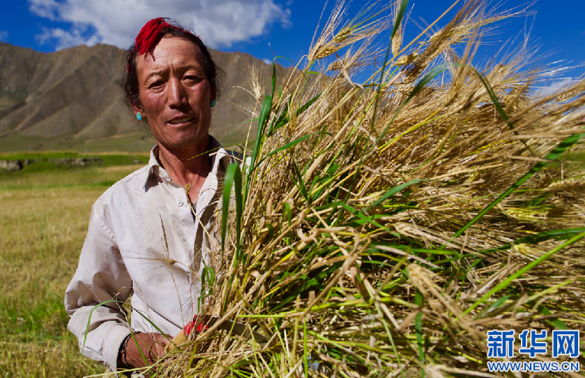 西藏日喀则市拉孜县曲下镇农民格桑收获青稞(2018年9月13日摄)。新华社记者 普布扎西 摄