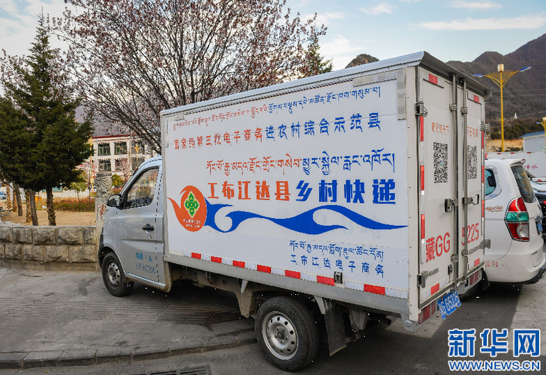 这是在工布江达县拍摄的乡村快递车(2018年4月19日摄)。新华社记者 刘东君 摄