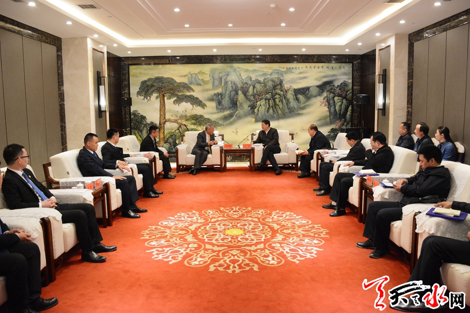 王军对严介和一行的到来表示欢迎,对太平洋建设集团关心关注天水发展表示感谢,并简要介绍了天水基本市情和经济社会发展情况。他说,天水是甘肃第二大城市,文化底蕴深厚、区位优势明显、生态环境良好,目前正处于快速发展的关键时期。近年来,天水市委、市政府抢抓“一带一路”建设机遇,高度重视招商引资工作,不断优化营商环境,全市上下形成了亲商、安商、富商的浓厚氛围,吸引了国内诸多实力雄厚的知名企业前来投资兴业,并在城建、交通、文旅等领域谋划实施了一批补短板、利长远的重大项目。希望太平洋建设集团对天水作进一步深入了解,寻找更多合作契机,促进双方携手发展、互利共赢。天水将着力提供优质高效的服务,创造良好的投资环境,努力推动双方高效务实合作。