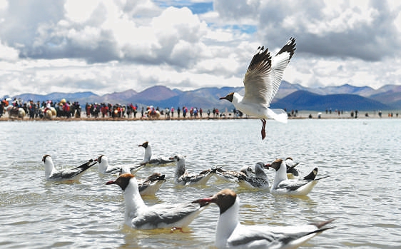 水鸟掠过纳木错湖湖面。西藏在发展中始终坚持生态优先,努力呵护高原一片净土。 蒯 乐摄