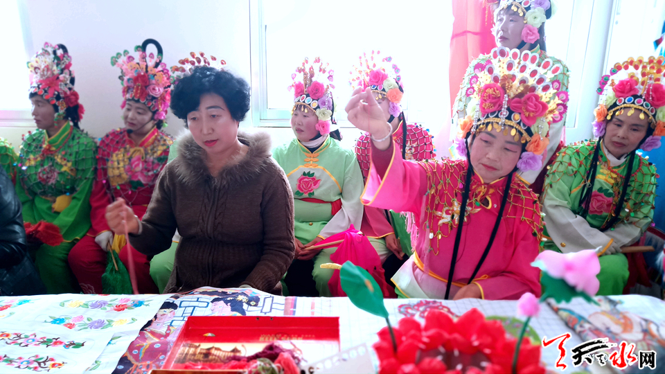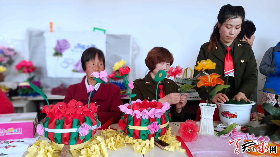 在非遗开班仪式上,天水镇的非遗传承人为学员们一边授课,一边展示了自己的绝技。这些年龄在60多岁老人,耳聪目明,技艺娴熟,他们制作的刺绣、插花、竹编等物品琳琅满目,精美绝伦,充分展示了这些民间艺人的聪明才智和多才多艺。