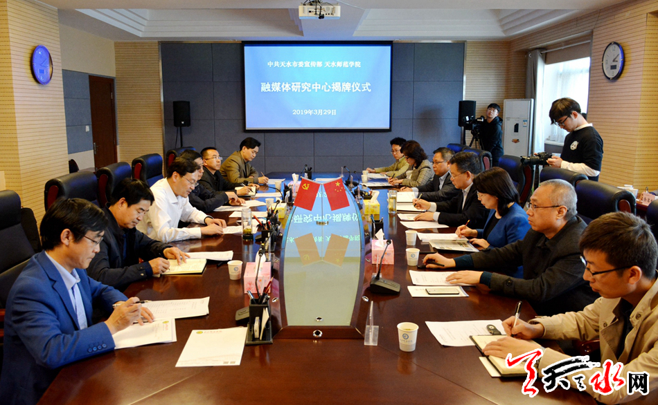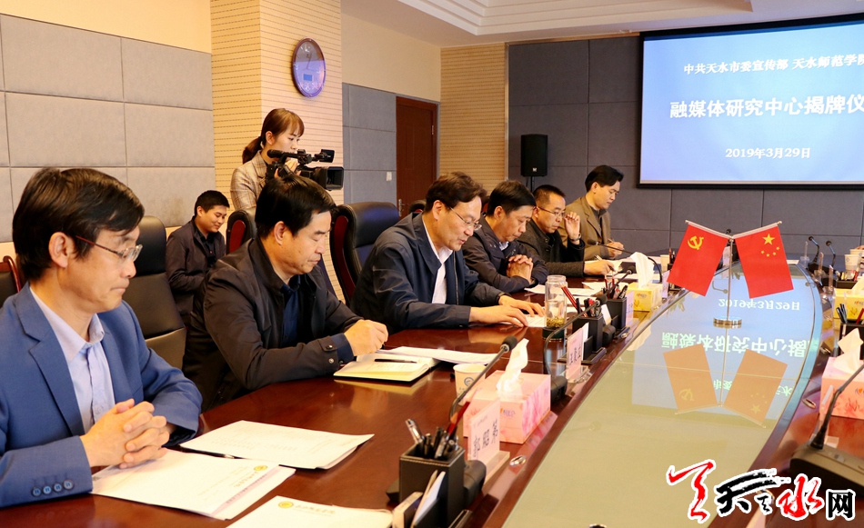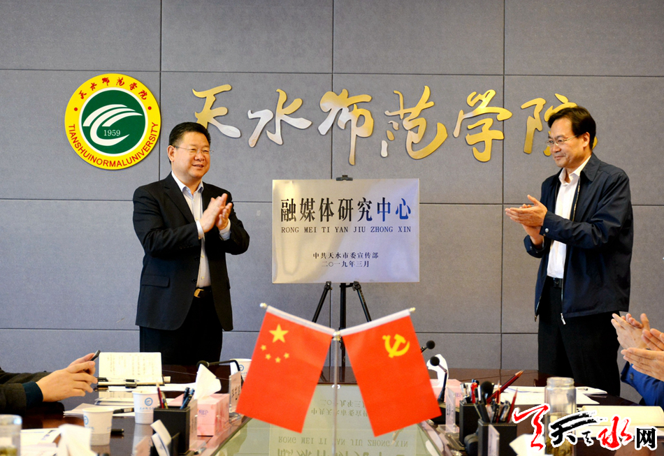 天天天水网讯【全媒体记者赵蔓】3月29日,“融媒体研究中心”在天水师范学院正式成立。市委常委、宣传部部长张建杰,天水师范学院党委书记李正元共同为研究中心成立揭牌。天水师范学院校长安涛主持揭牌仪式。