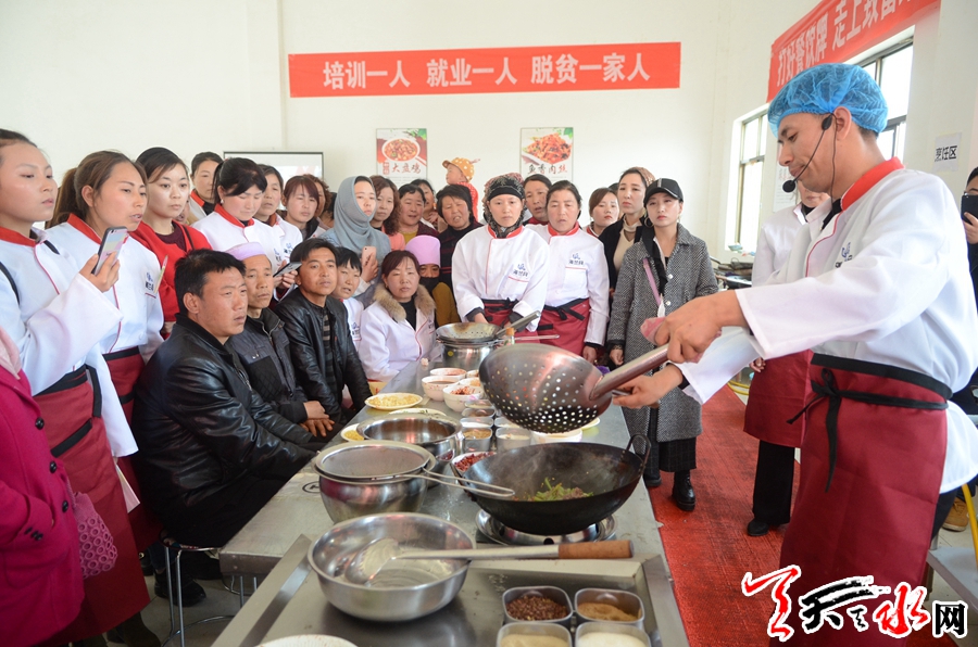 据现场监督培训质量的张家川县人社局劳务办副主任妥斌介绍,这是张家川县为了落实好全县精准扶贫项目,为了让建档立卡户有一技之长,为了增加贫困户脱贫致富渠道实施的培训任务,在原来的培训基础上今年又新开了中西式面点、中式烹调师培训班,目前全县开展5期,培训学员600余人,今年计划开展各类技能培训2000余人,有了一技之长,脱贫摘帽将会又多条出路。