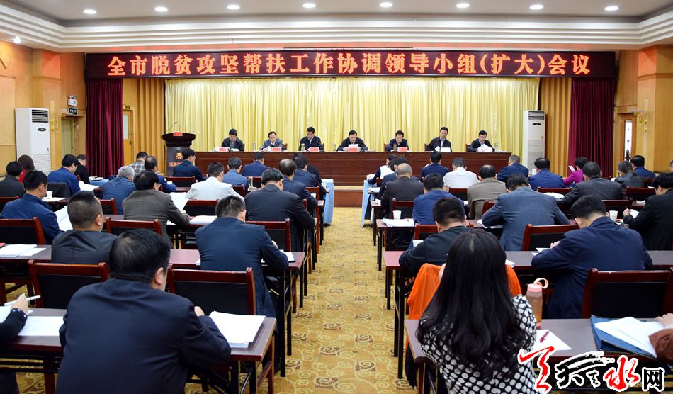 天天天水网讯【全媒体记者马放】4月2日,全市脱贫攻坚帮扶工作协调领导小组召开(扩大)会议。市委副书记、市脱贫攻坚帮扶工作协调领导小组组长赵卫东出席会议并讲话。他强调,全市各级各部门要深入贯彻落实习近平总书记关于扶贫开发重要论述和参加甘肃代表团审议时的重要讲话精神,以强烈的使命担当、精准的帮扶举措、务实的工作作风,狠抓落实、全力冲刺,坚决打好打赢脱贫攻坚战。
