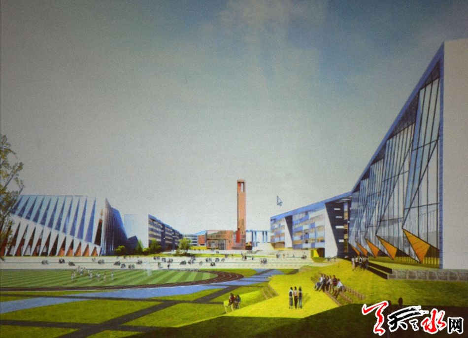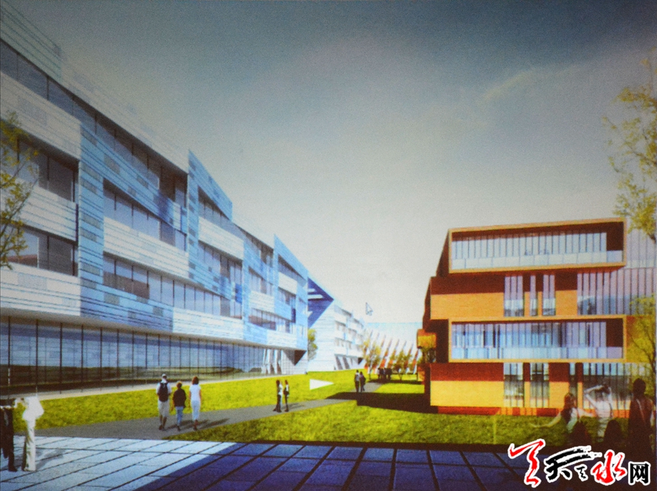 天水市职教园区项目位于秦州区藉口镇白草滩村,总占地面积1267亩,建设用地950亩,总建筑面积56.8万平方米,总投资约26亿元,设计在校学生规模1.5万人,被列为甘肃省2019年重大建设项目。项目将遵循“中职高职一体、教育产业融合、招生就业贯通、国际校企协作”的办学思路,着力打造“智慧化、人文化、园林化、时尚化”的现代校园,建设甘肃领先、国内一流、面向世界的现代化职业教育高地。项目建设坚持一次征地、一次规划,分阶段建设,第一期项目力争于2020年9月开始投入使用。
