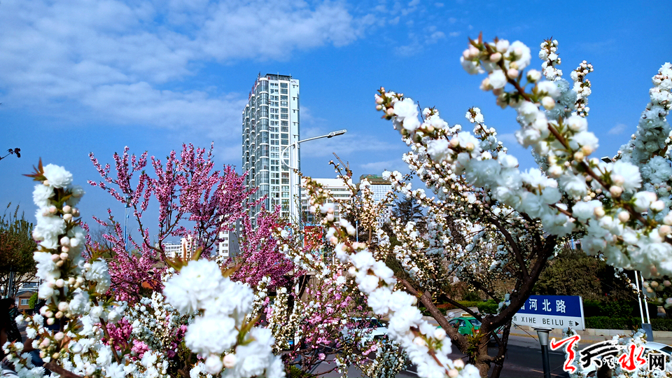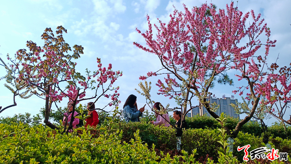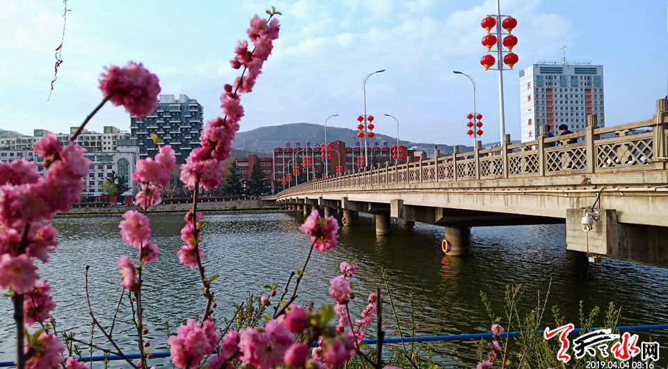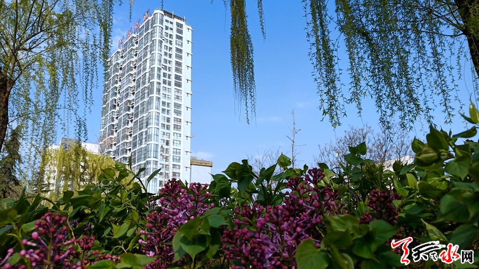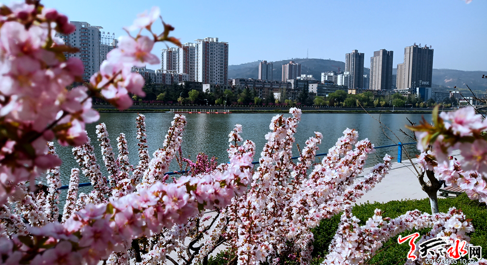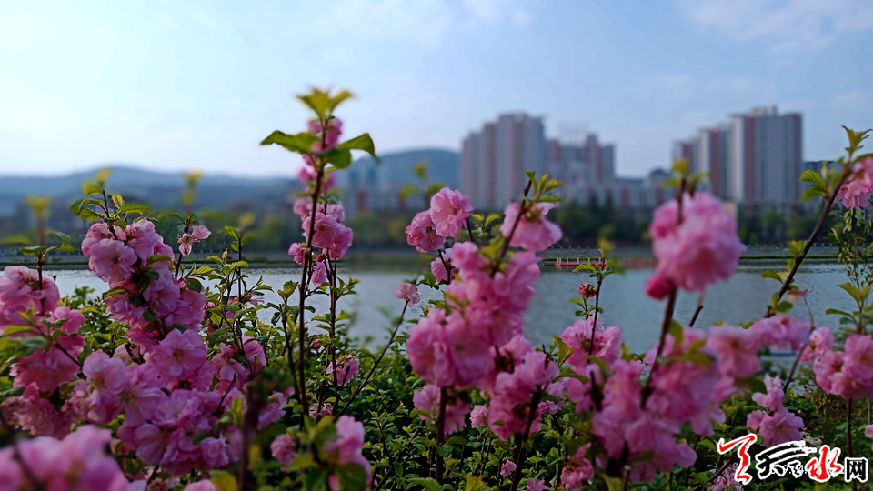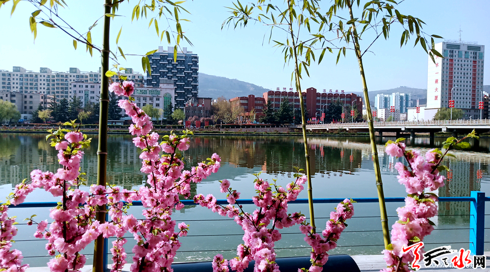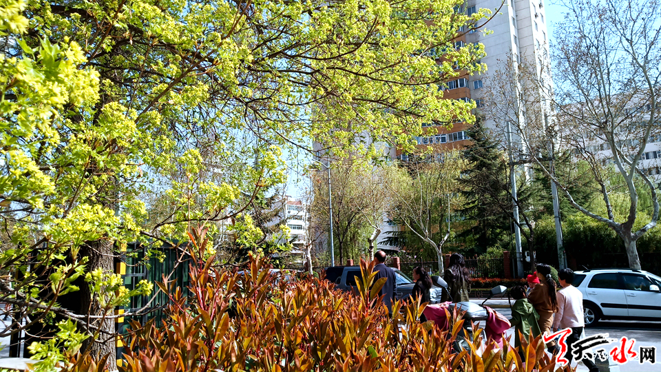 一进入四月,春日的天水大地披绿,满目苍翠,早春的春风仿佛一夜间吹绿了万紫千万的天水大地。漫步在天水湖畔,草如茵,树成行,花似海,碧水岸边,绵亘十里,芬芳不绝,一幅“叶红枝头春意闹”的盛景令人心旷神怡。