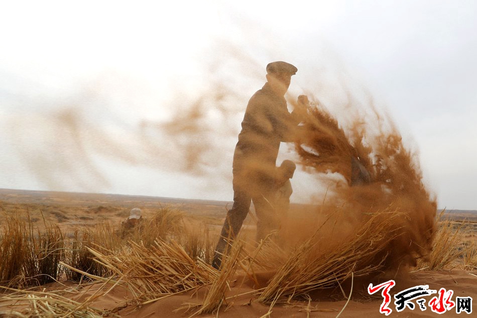 治沙初期,六老汉发现用麦草挡住树苗的土办法可以提高植树的存活率。“一棵树,一把草”,成了治沙的法宝,用麦草压沙的方法则沿用至今。
