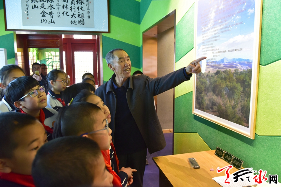 古浪县八步沙六老汉治沙纪念馆,郭万刚老人亲自为前来参观的学生讲解。