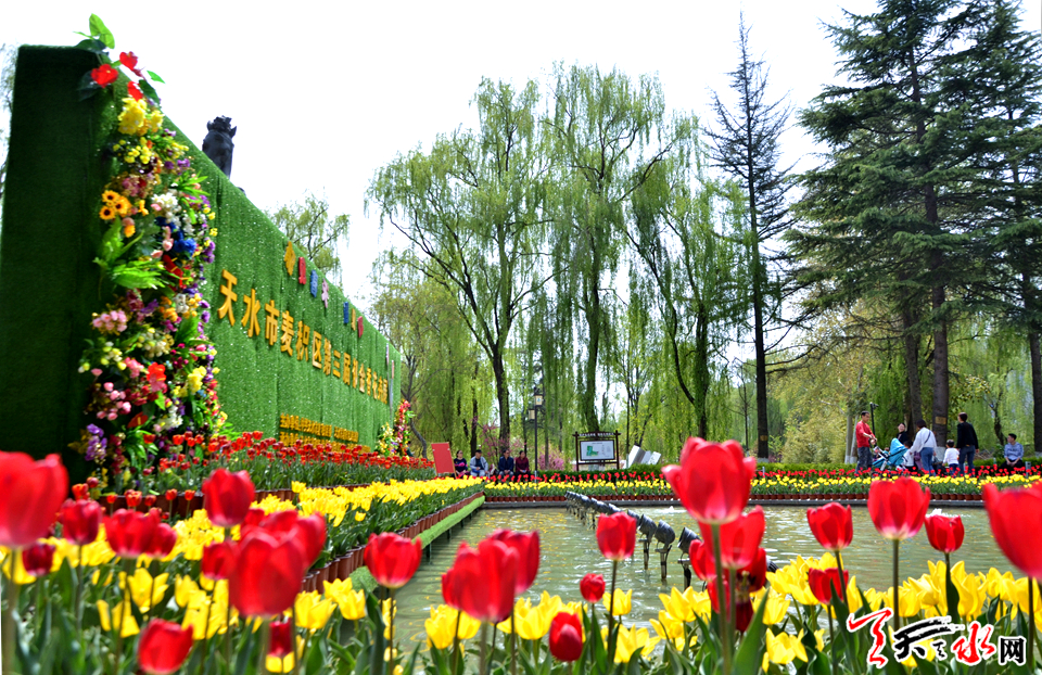 马跑泉公园,犹如一双顾眼神飞的神采眼晴,它不仅是展示美丽天水这张亮丽名片的窗口,也推动了天水市创建园林城市工作的步伐。五彩缤纷的郁金香花海与公园盛开的玉兰、梅花、樱花、桃花、杏花、月季等各类传统花卉相映成趣,构成了一幅花开满园的美丽景致。
