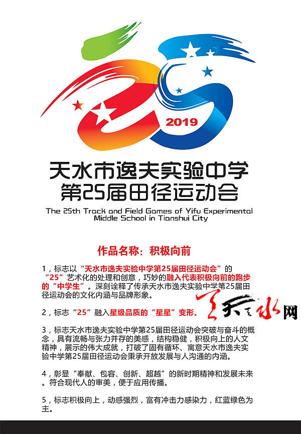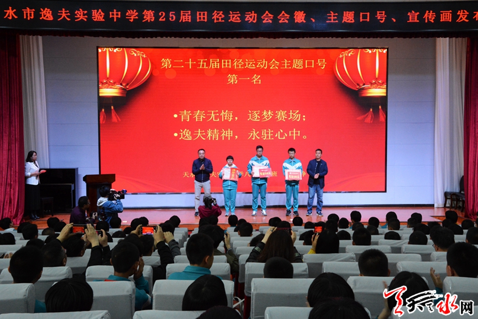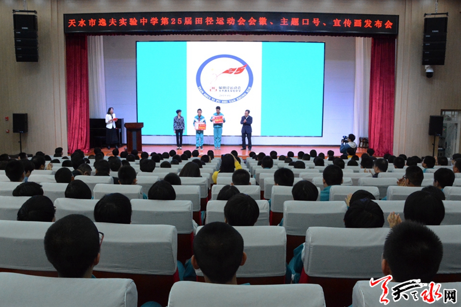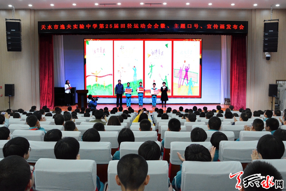 天天天水网讯 (全媒体记者郝勤学 见习记者罗馨)4月10日下午,市逸夫实验中学举行第25届动运动会会徽、主题口号、宣传画发布会,面向社会公布征集优秀会徽、主题口号、宣传画作品。