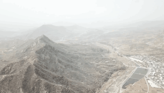 无人机航拍河北省平山县南文都村,与岗南水库边的西柏坡村仅有一山之隔。摄影/李行健