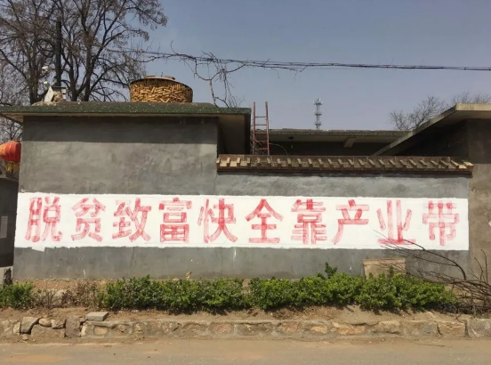 南文都村村口的标语,“脱贫致富快 全靠产业带”。