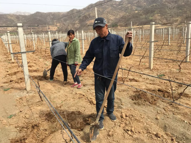 初春时节,葡萄架还在等待紫色的点缀,葡萄产业园的董事长张宁正在地里盯着施肥的进度。