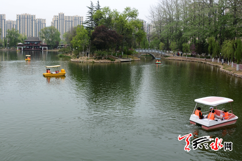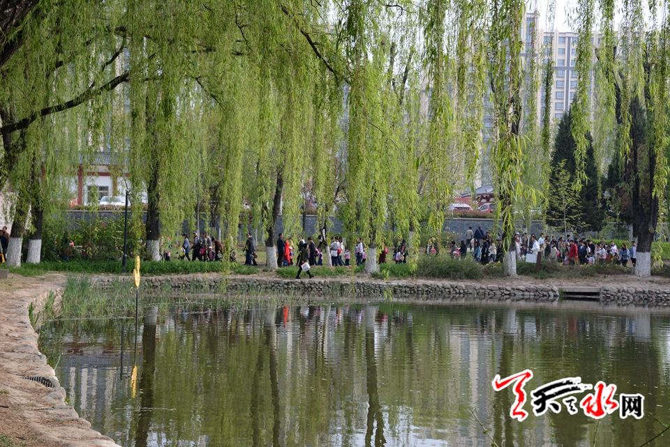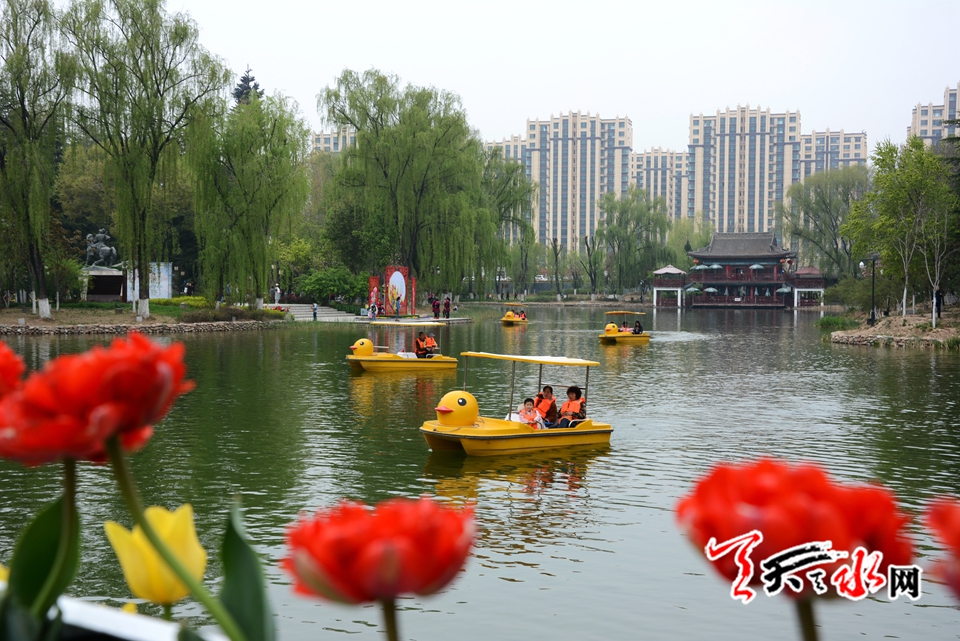 马跑泉公园,犹如一双顾眼神飞的神采眼晴,它不仅是展示美丽天水这张亮丽名片的窗口,也推动了天水市创建园林城市工作的步伐。五彩缤纷的郁金香花海与公园盛开的玉兰、梅花、樱花、桃花、杏花、月季等各类传统花卉相映成趣,构成了一幅花开满园的美丽景致。