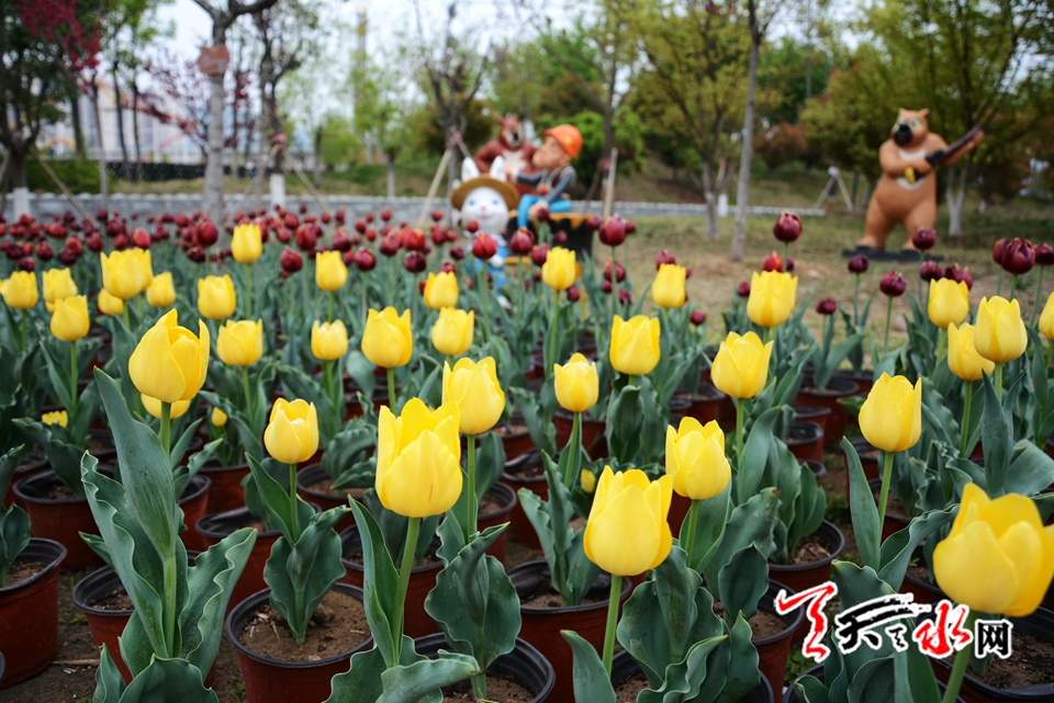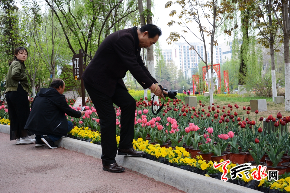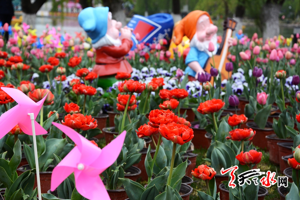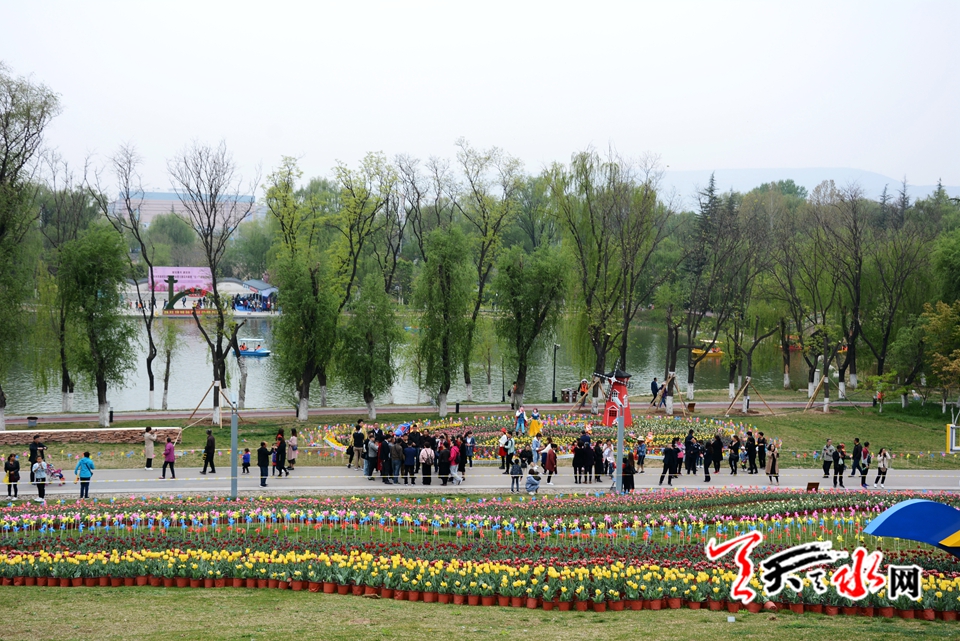 天天天水网讯 (见习记者罗馨) 仲春时节,柳绿桃红,正是踏青游玩的好时节。4月13日,正值周末在麦积区马跑泉公园第三届郁金香主题花卉展上,20余万盆鲜花美丽绽放,迎来了不少游客看景赏花拍照打卡,马跑泉公园成为了天水人气火爆的景点。