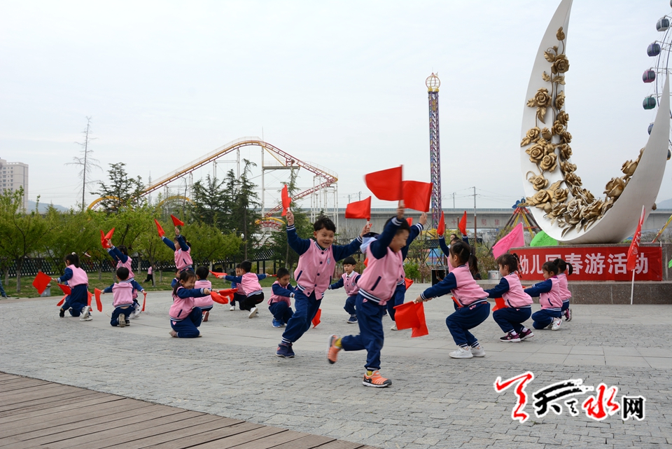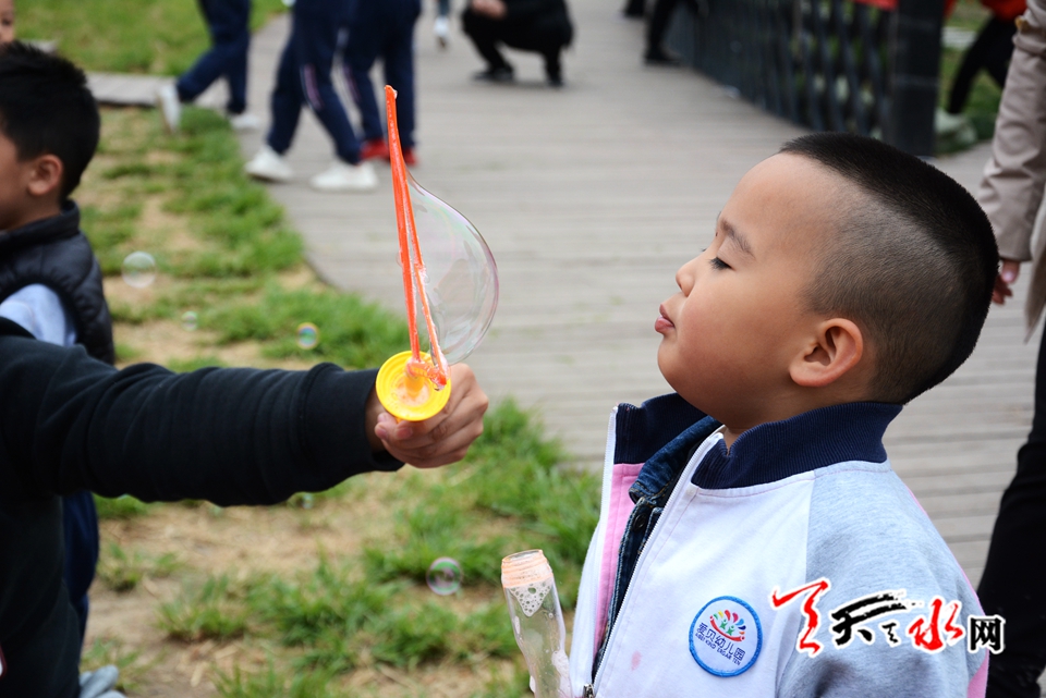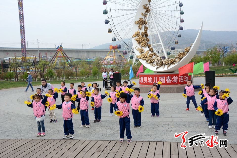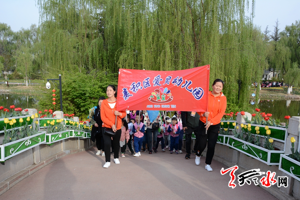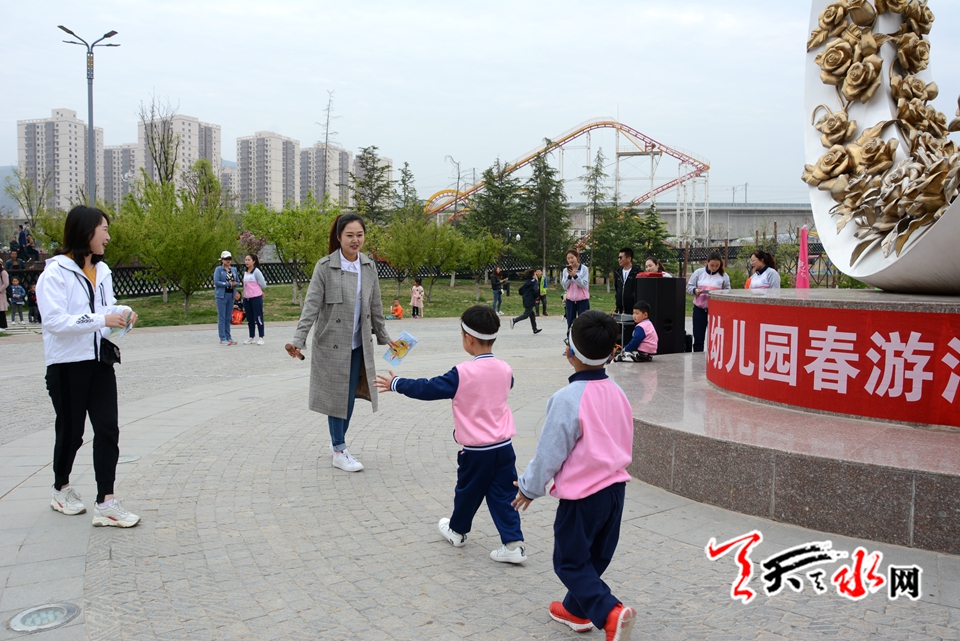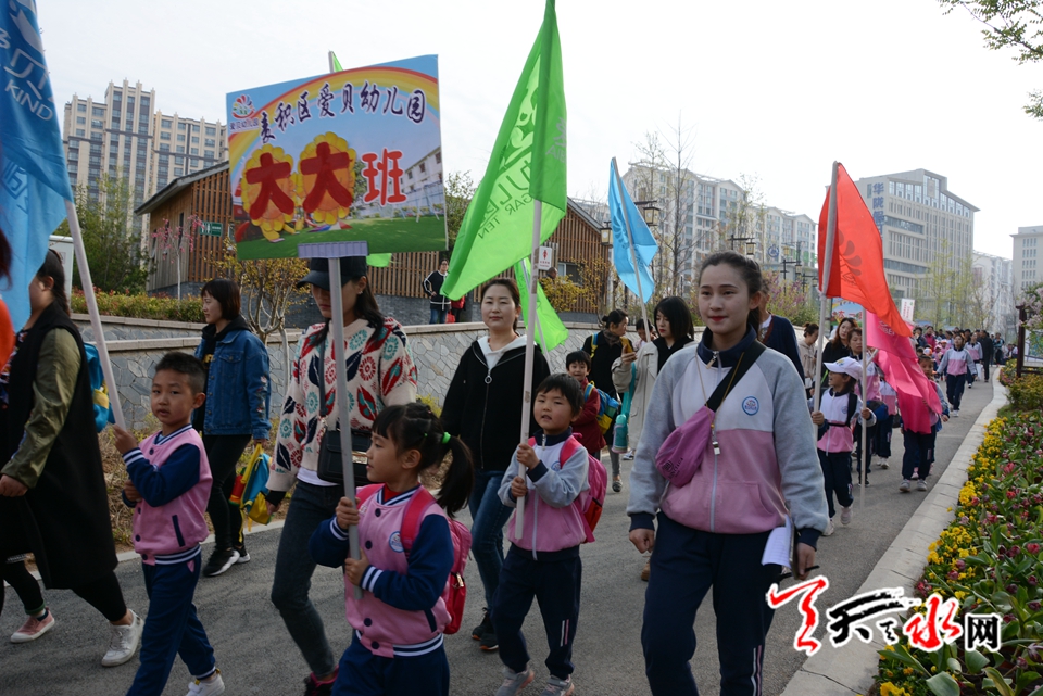 天天天水网讯(见习记者罗馨)阳春四月,莺飞草长,正是踏青的好时节。为了开拓幼儿视野,增长知识,亲近自然、感受生活,让幼儿在与大自然的接触中感受人与自然和谐的重要,增强环保意识,让幼儿感受大自然的美,萌发幼儿爱周围环境、爱家乡、爱祖国的情感,4月13日上午,麦积区爱贝幼儿园在马跑泉公园举行“亲亲自然 快乐成长”春季亲子户外游园活动。