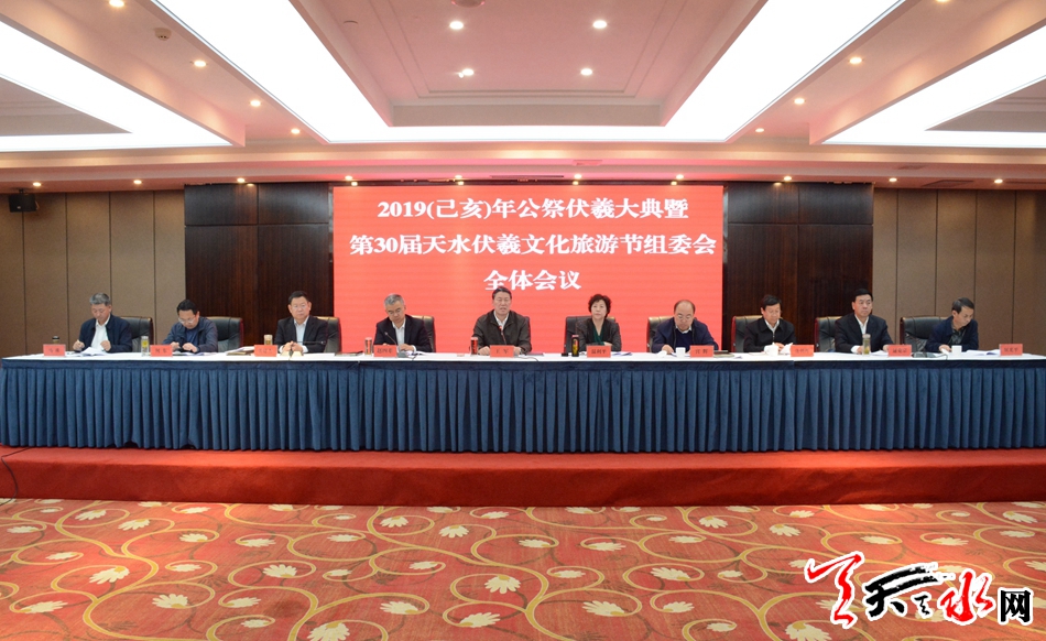 会议宣读了《关于成立2019(己亥)年公祭中华人文始祖伏羲大典暨第30届中国天水伏羲文化旅游节组委会的通知》和《2019(己亥)年公祭中华人文始祖伏羲大典暨第30届中国天水伏羲文化旅游节总体方案》;安排部署了今年节会筹备工作。