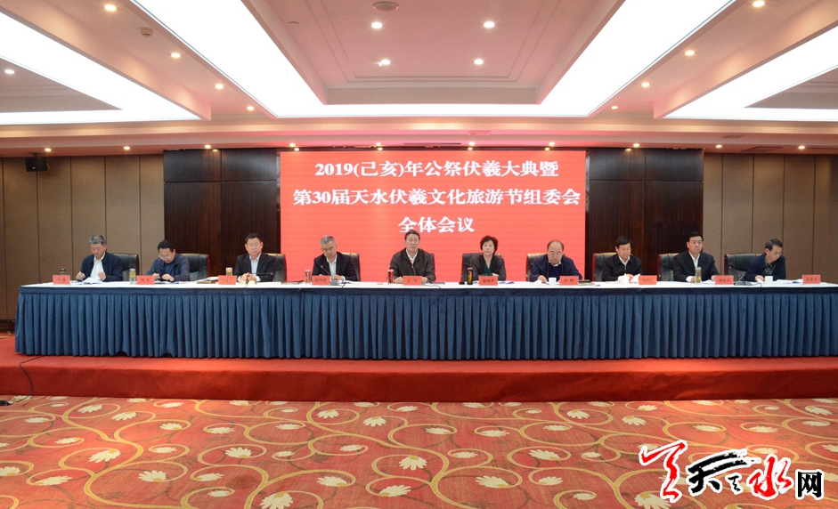 会议宣读了《关于成立2019(己亥)年公祭中华人文始祖伏羲大典暨第30届中国天水伏羲文化旅游节组委会的通知》和《2019(己亥)年公祭中华人文始祖伏羲大典暨第30届中国天水伏羲文化旅游节总体方案》;安排部署了今年节会筹备工作。