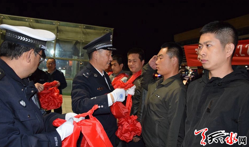 副市长、市公安局党委书记、局长马瑛带领市局和秦州分局有关人员迎接专案民警凯旋归来,向专案民警长期的辛勤付出表示慰问,对他们取得的骄人战果表示祝贺。