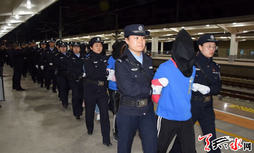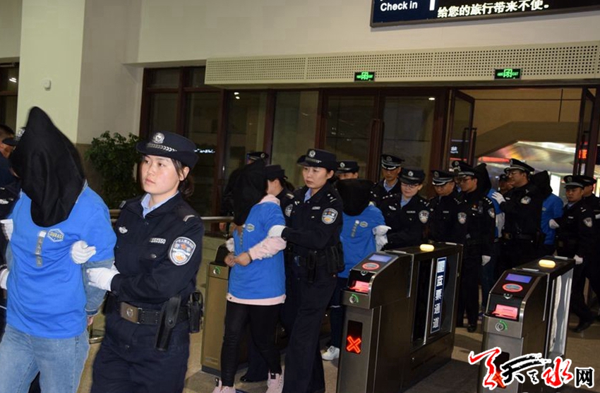 天天天水网讯 4月12日22时许,随着G4291次列车缓缓驶入天水南站,天水市公安机关侦办的部督“2.22” 制作、复制、贩卖、传播淫秽物品牟利案首批19名涉案犯罪嫌疑人被安全押解到天水。