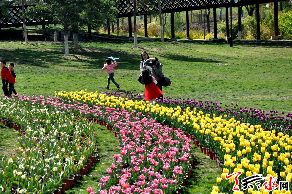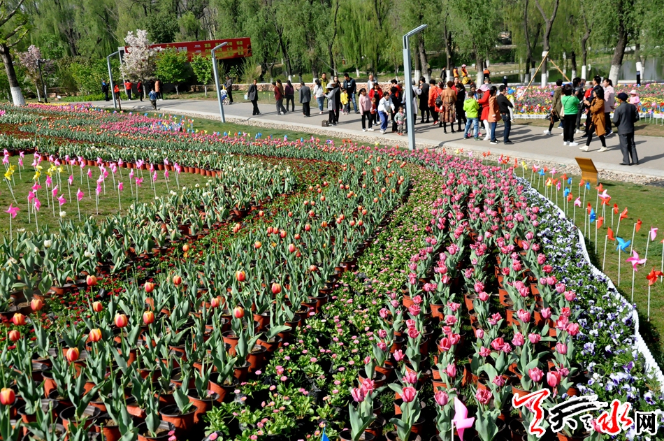 麦积区马跑泉公园第三届郁金香主题花卉展以“郁见春天,遇见你”为主题花卉展共展出普利西玛、世界传奇、紫衣王子、友谊、道琼斯、米兰达等十多个品种20余万盆鲜花美丽绽放。
