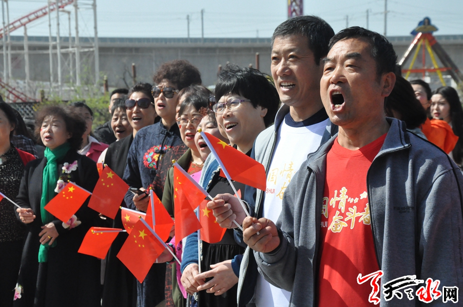 “我和我的祖国,一刻也不能分割......”随着一曲甜美纯真的童声合着悠扬的小提琴响彻麦积区马跑泉公园,第三届郁金香“郁见春天,遇见你”主题花展快闪拍摄打板开机。顿时整个公园里只有一种旋律,只有一种歌声,只有一种情怀,数千个声音同唱一首歌,千百面红旗迎风飘扬。