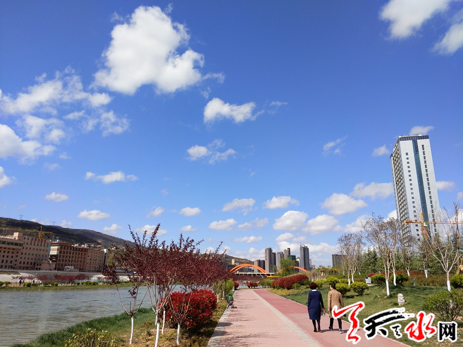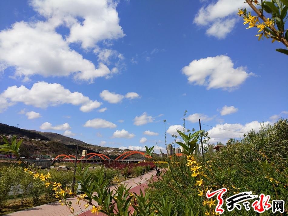 四月的天水应该是这座城市最美的季节,花事不断,春光灿烂,风卷云舒,山清水秀。莽莽的秦岭山系和陇山给了这座城市最慷慨的馈赠--宜人的气候和环境。