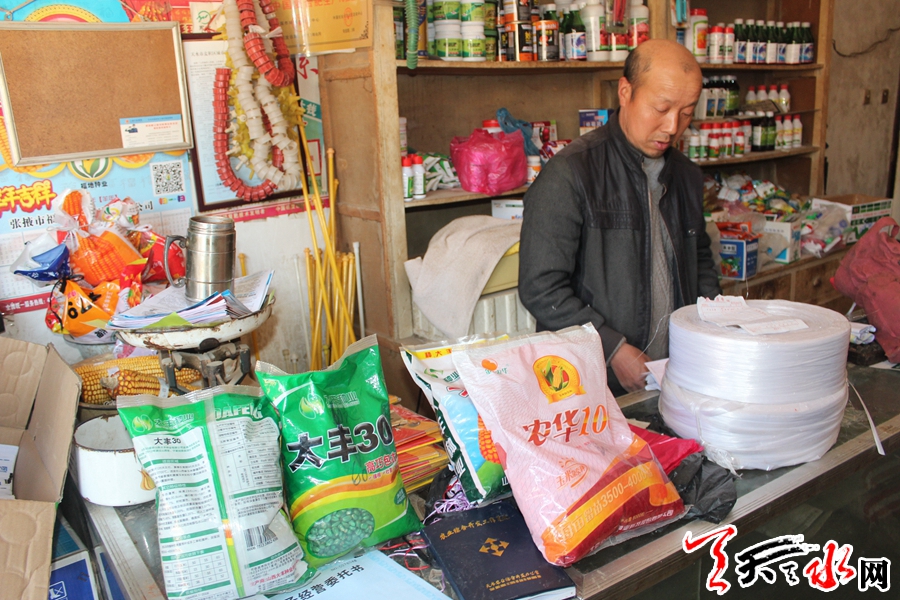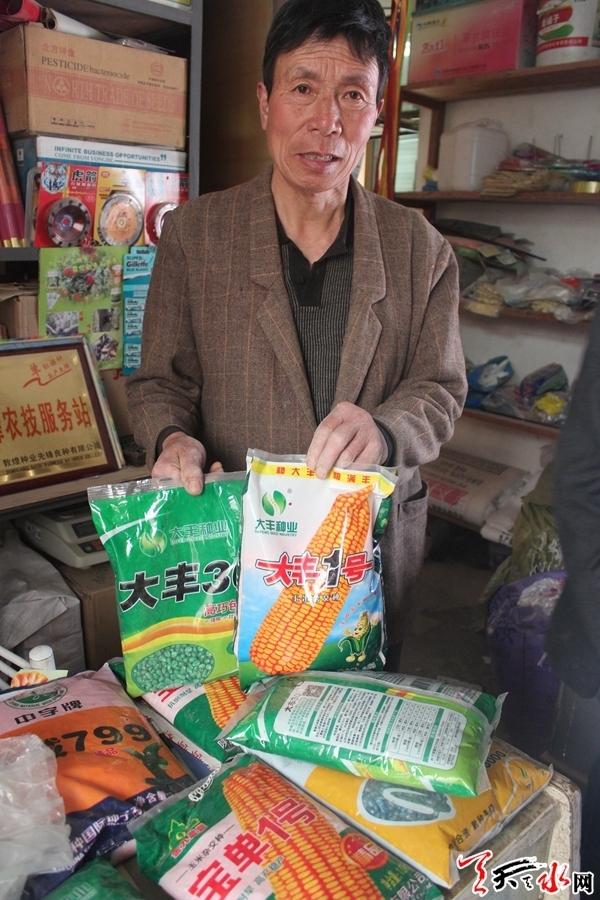 4月12日下午,当记者前往位于秦州区左家场附近的世杰农资经营中心时,店主刘世杰正在为顾客介绍玉米种子。