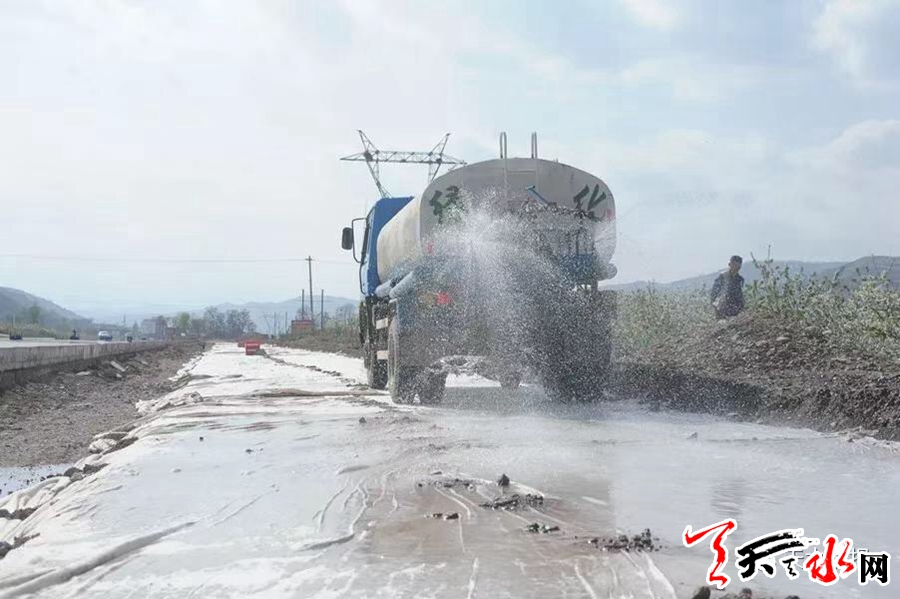 路面工程除武山县城过境段15公里外,其余路段的垫层、底基层、基层、沥青下面层已基本完成;秦州区关子镇到甘谷县原G316线道路上正在修建防护墩。