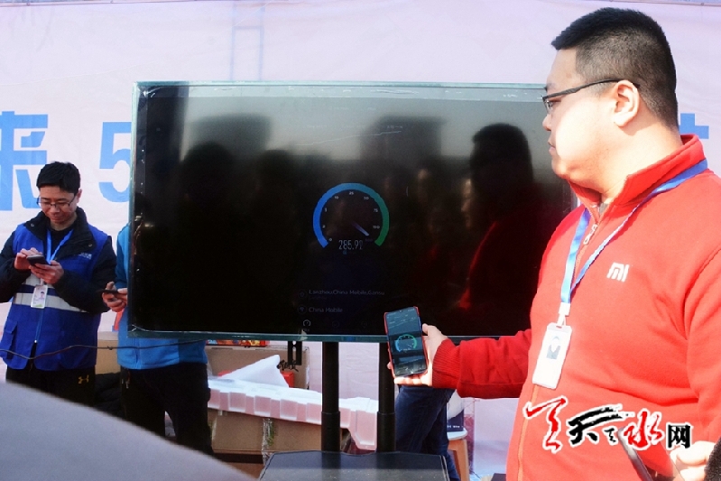 3月12日,天水移动在伏羲文化广场率先开启5G业务体验。现场通过网速测试软件进行了演示,当天官方资料显示,5G的下载速率峰值能达到1G,相比4G速率提升了6倍以上。但是由于目前没有网络终端,所以用户需使用CPE连接。