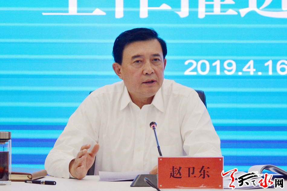 天天天水网讯【全媒体记者 王晓馨】4月16日下午,全市扶贫车间提质扩量增效工作推进会召开。市委副书记赵卫东在会上强调,要深入贯彻落实习近平总书记关于扶贫工作重要论述和参加十三届全国人大二次会议甘肃代表团审议时的重要讲话精神,统一思想和行动,凝聚共识和力量,聚焦群众增收这一靶心,全面推进我市扶贫车间提质扩量增效,为助力全市打赢脱贫攻坚战发挥积极作用。