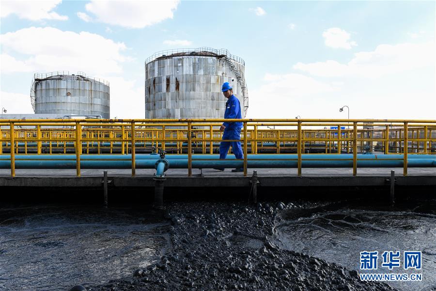 一名工作人员在国家能源集团鄂尔多斯煤制油分公司巡查厂区内的废水回收池(4月11日摄)。 新华社记者 刘磊 摄