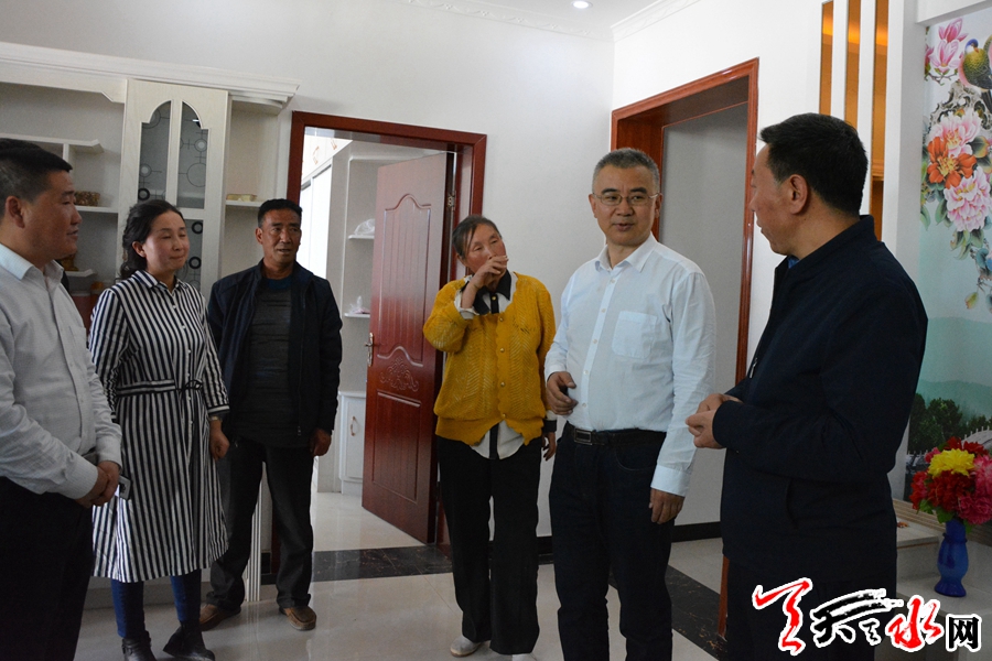 两天来,赵四辈先后来到秦安县王尹镇陶阳村、赵梁村,兴丰镇那坡村,清水县贾川乡阳湾村、红堡镇新坪新村,张家川县鑫达矿业、闫家乡闫家村等地,实地查看了易地扶贫搬迁工作开展情况,并就基础设施建设、危房改造、乡村环境卫生整治、通村道路、产业发展、安全生产等脱贫攻坚重点工作进行了调研。同时还走访了部分易地扶贫搬迁入住户,详细了解了他们的家庭收入、安全饮水、子女上学、产业发展等情况。