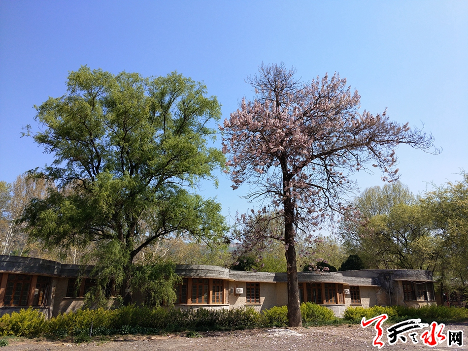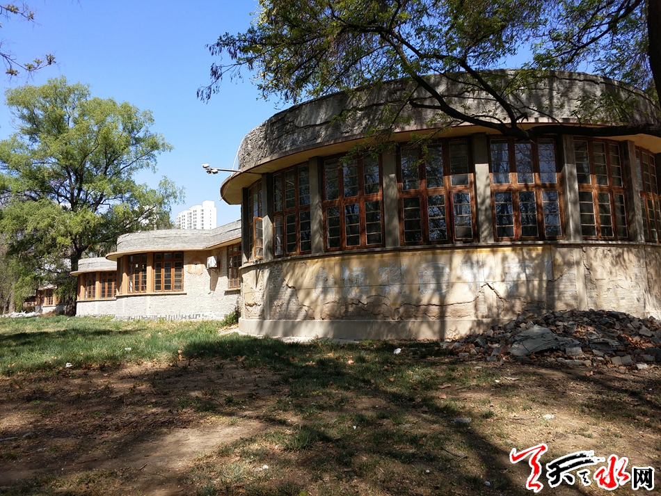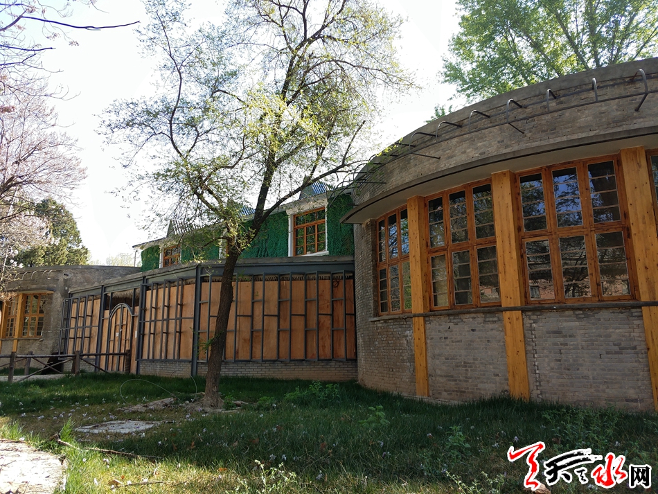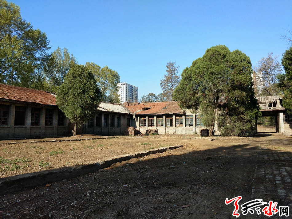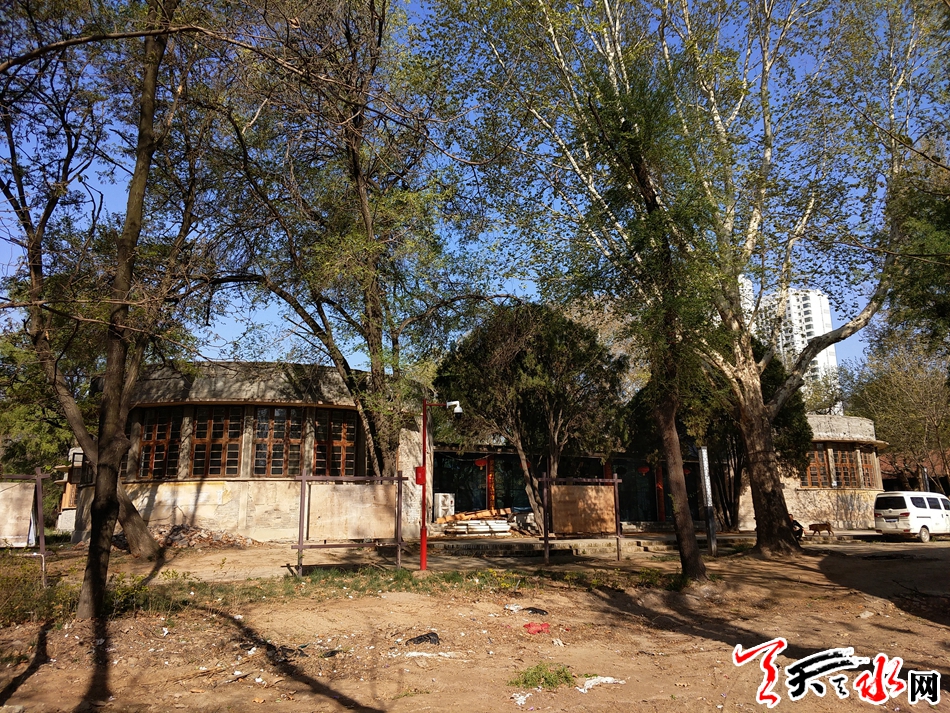 岷山厂是在“天水步校”原址上建起的,现在留有相当一部分“天水步校”的遗址。“天水步校”是对中国人民解放军第一高级步兵学校的俗称。创办于1951年2月,为军级单位。曾经为我军培养了几千名军事指挥人才,在我军军史上占有重要一席。苏式建筑“圆包房”分别是步校学堂,步校俱乐部和步校理化中心,经过60多年的风雨,这些建筑已经斑驳不堪,只有那些围绕在“圆包房”周围的高大树木,依然像尽职的士兵一样守护着曾经的辉煌。紧挨“圆包房”路北有两栋四面合围三进两院的建筑,这应该是步校学员的宿舍吧!走进幽静的院子,树木参天,绿草茵茵,恍若中那些朗朗的读书声和匆匆的身影浮现在眼前,岁月如驹,带走了曾经人与物的芳华,把记忆幻化成一地阳光,洒满岁岁年年枯荣的草地。