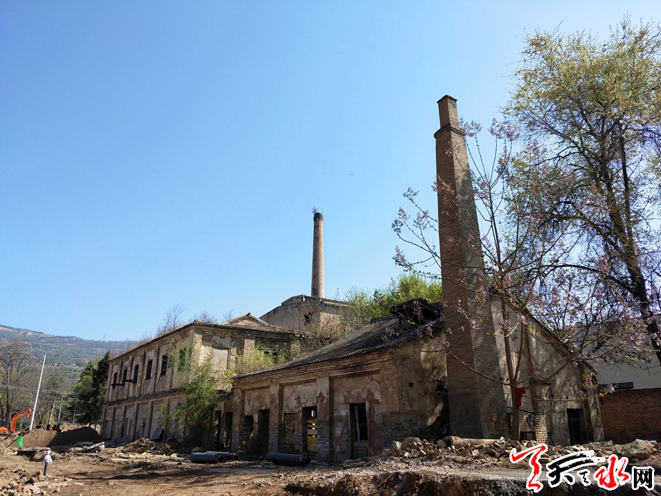 在我很小的时候,常听每年去一趟五里铺粮库交粮食的爷爷说,在步校里面,有一座造币厂,很洋气,一般人不让进,因为步校大门口有背枪的哨兵。曾经一直想亲眼目睹一下那个造币厂的尊荣。可是由于忙于生计,虽然在这座城里安家已经20年了,依然没有去亲眼去看看它。今天,几经打听,终于找到了造币厂,一排南北走向的二层青砖木结构小楼和一排平房连着一道四方形烟囱,平房有一两间的房顶已经坍塌。看到眼前的场景,我不由得想起了已经离世多年的爷爷。人会老去,死去,那么这座见证天水工业发展先河的建筑,已经很衰老了。此前有消息说秦州区正在计划修复这座建筑,希望这个计划能够早日落实,唤醒这座建筑沉睡已久的灵魂。