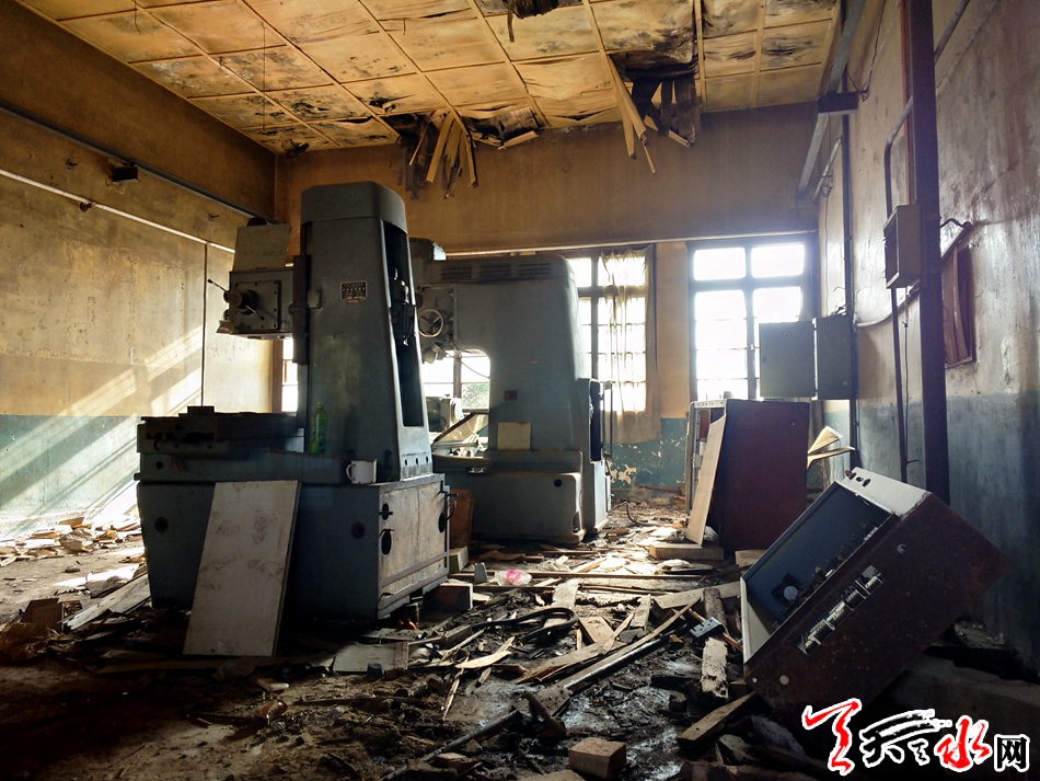 随着城市的发展,岷山厂将被改建成一座城市公园,前期的拆除工作已经开始,部分车间已经不见。在一个镀铬车间里,那堆放一地的镀铬池已经锈迹斑斑,一个小吊钩在风中摇摆,墙上落款为“5206厂保密委员会办公室”的车间保密工作管理制度字迹清楚,“镀铬工安全技术操作规程”和“五六-1式枪管内膛镀铬工艺”表格任然坚守在多年前原挂的地方。走进镗床车间,高大的车床落满灰尘,对面墙上的中国地图和毛笔书写的操作规程彼此讲述着这里昔日的嘈杂和忙碌。车床操作台上一直帆布手套和一把毛刷,似乎等待着主人再次的到来......