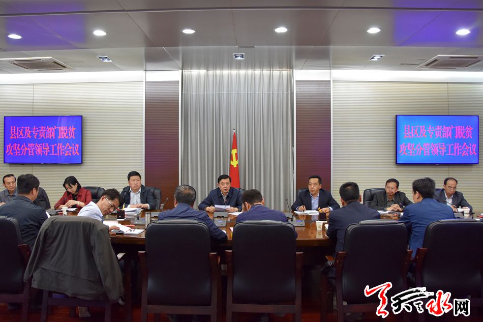天天天水网讯【全媒体记者吴丽娜】4月19日,市委副书记赵卫东主持召开全市县区及专责部门脱贫攻坚分管领导工作会议。他强调,要主动扛起脱贫攻坚政治责任,进一步提高政治站位,强化理论武装,认真履职尽责,扎实推进脱贫攻坚各项工作全面有效落实。