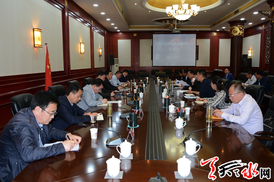 天天天水网讯【全媒体记者马哲】4月23日,市委副书记、市长王军主持召开座谈会,就天水市政府与大易融承(北京)投资公司开展文化旅游项目合作事宜进行深入磋商洽谈。