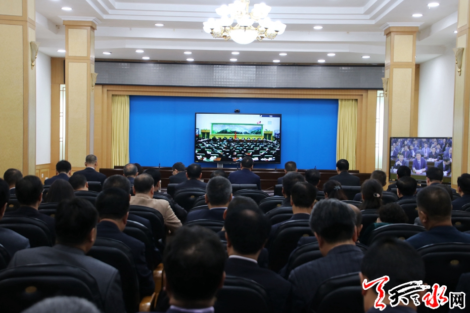 市政府领导王军、刘骁、郝文杰、王燕、逯克宗、马瑛,市政府秘书长王祥林以及相关部门和单位负责人在天水分会场收听收看会议。