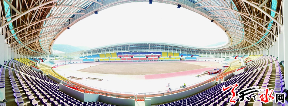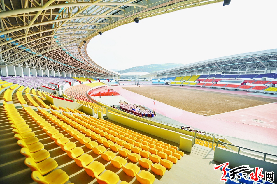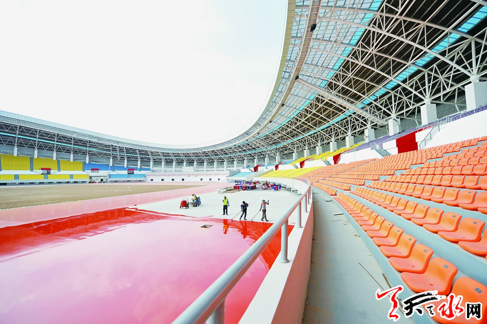 天水市体育中心项目建设内容为“一场两馆,一校一中心”,即体育场、体育馆、游泳馆、体育运动学校、全民健身中心及地下停车场。目前,体育中心的体育场和游泳馆正在进行内外装修,工程已进入扫尾阶段。体育场座椅已安装到位,游泳馆正在准备安装,体育馆正在进行内部装修。所有室外绿化、场地及道路工程已全面开始施工。力争今年5月底全面竣工。