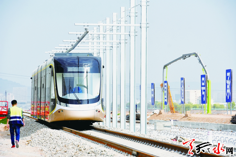 天水有轨电车项目,由中国通号旗下通号轨道车辆有限公司自主研发制造的五模块100%低地板有轨电车,在完成总装和试验线静、动态试验后,从长沙装车启程,于3月28日运抵我市。现在待复编组装后,将进行通电上线调试,作为甘肃省的首辆有轨电车,计划于2019年11月试运行。