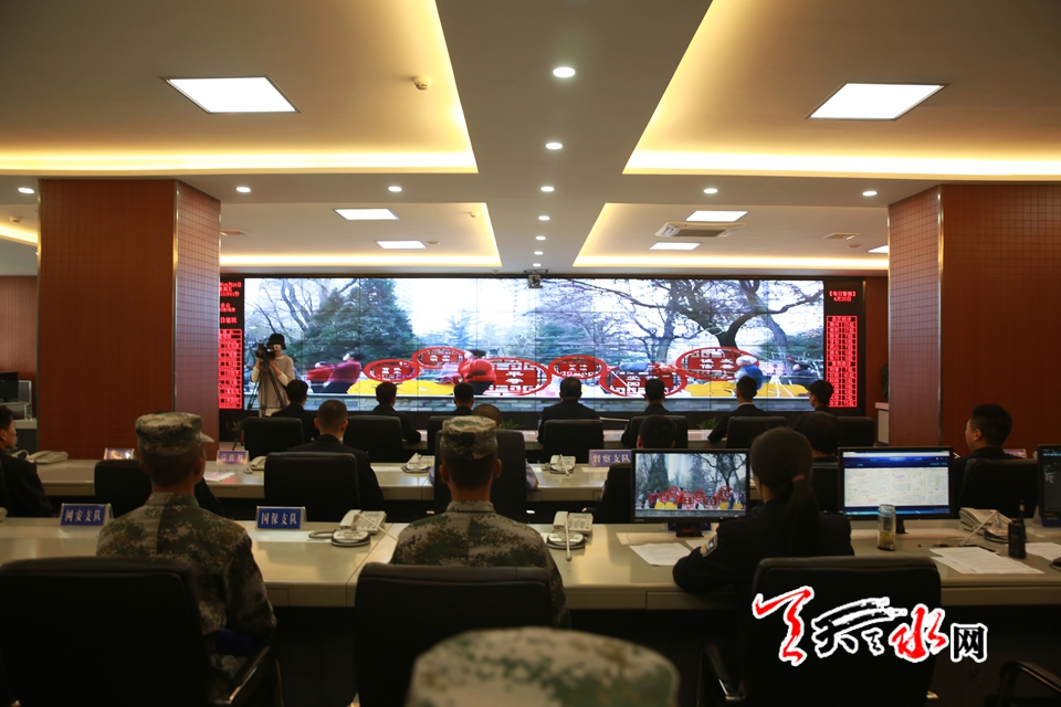在市公安局合成作战指挥中心,比电影大片更真实的公安宣传片,迅速反应的集结拉练,给观摩成员又一次视觉冲击、心灵震撼。《不忘初心、砥砺前行——天水公安工作汇报专题片》振奋人心,立体化治安防空系统演示和应急处突小分队集结演练,让人热血沸腾。
