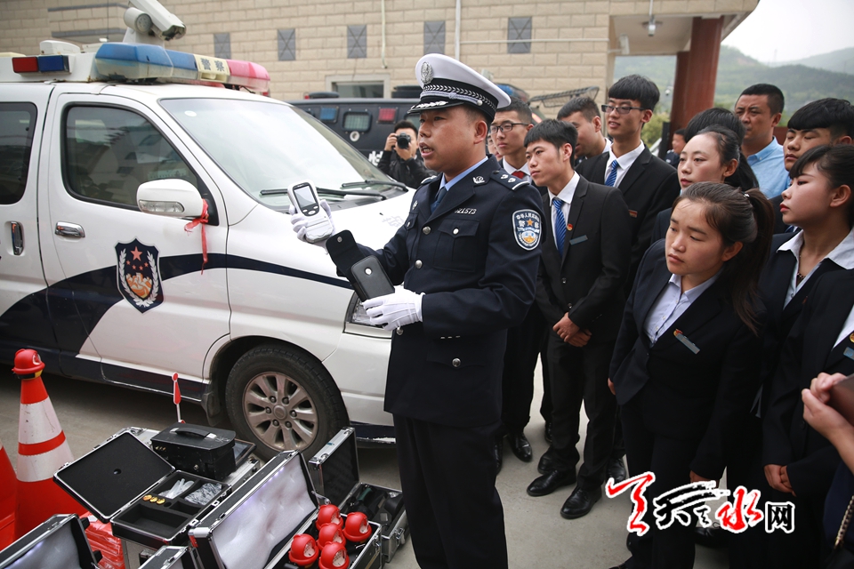天天天水网讯(见习记者 崔文涛)为进一步融洽警民关系,加强青少年思想道德建设和法制安全教育,提高人民群众的自我保护意识和应急防范能力,4月26日,天水市公安局邀请天水师范学院、甘肃林业职业技术学院、甘肃工业职业技术学院和甘肃机电职业技术学院80名师生代表、社区群众代表以及甘肃法制报、天水日报、天水广播电视台、天水在线网、天天天水网等省市媒体代表走进警营,零距离接触警务工作,学习应急技能,探访警营生活。