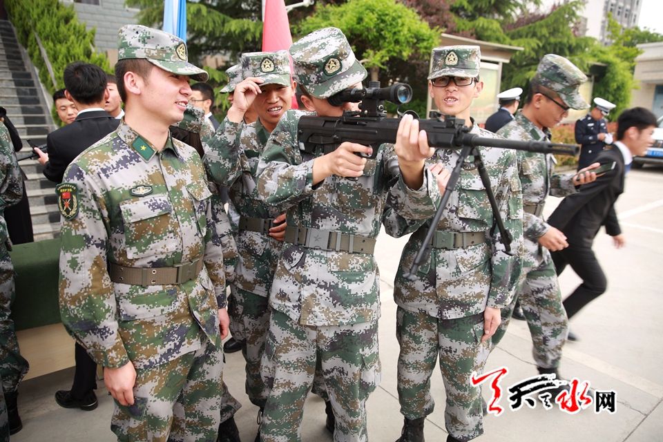 在市公安局前院集中宣传点,讲解员依次带队,对本次警营开放日展出的特警支队防爆车、特警警用装备,交警支队事故勘察车通信图传车,秦州分局移动警务车现场观摩、了解;治安支队民警零距离为参观人员展示了警用枪械。看到这些只有在影视剧中才出现过的“神秘装备”,观摩队员异常兴奋,有的充满好奇地向民警询问这些装备的性能和使用方法,有的兴致勃勃跃跃欲试,有的登上特警车、坐在驾驶座、手握方向盘,还有的像模像样地端起枪,拍照留念,过足了一把警察瘾……参加警营开放日的“亲密战友”成了本次活动的颜值担当和流量担当,刑警支队的训导员带领他们的爱犬演练比武,一声声口令、一个个干净利落的动作、一次次精彩的演示,赢得了阵阵掌声。