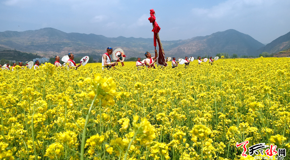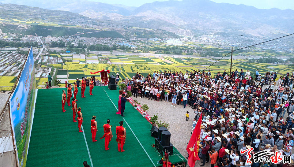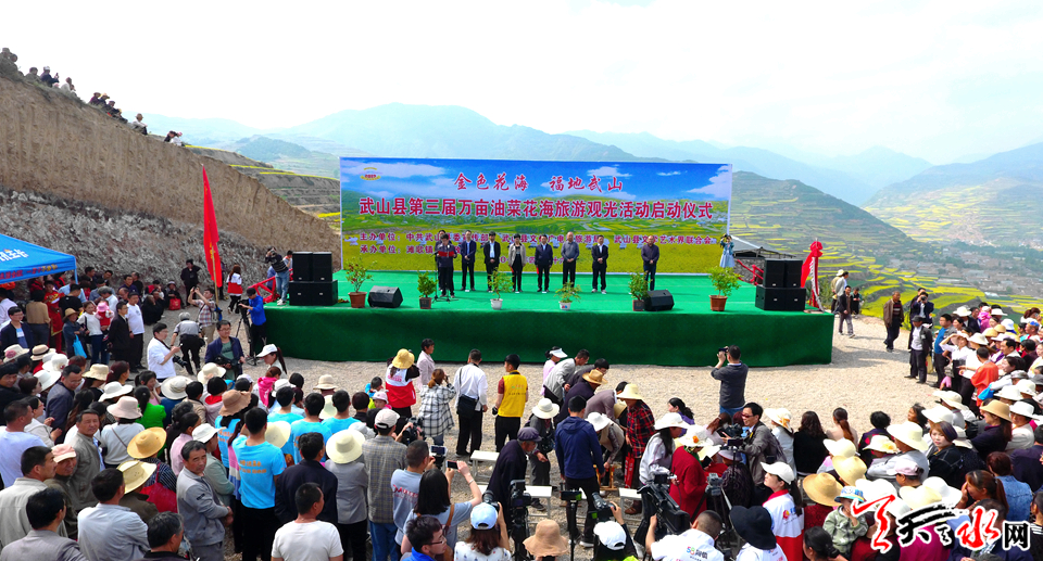 天天天水网讯【记者 张文都 杨旭】人间四月春风裁,碧浪金波入画来。4月26日,值此繁花似锦的时节,武山县举办的“金色花海•福地武山”——第三届万亩油菜花海旅游观光活动在滩歌古镇启幕。