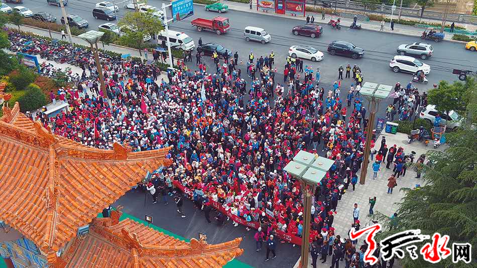 在喜迎新中国成立70周年之际,29日上午,天水・秦州第二届“生态南山杯”全民健身徒步登山活动在羲皇故里、藉水河畔的陇右第一名刹——南郭寺景区南山景观生态长廊隆重举行。来自兰州、陇南、定西以及天水市五县两区的登山运动爱好者2200人踏着春日的节拍,享受徒步健身的快乐。
