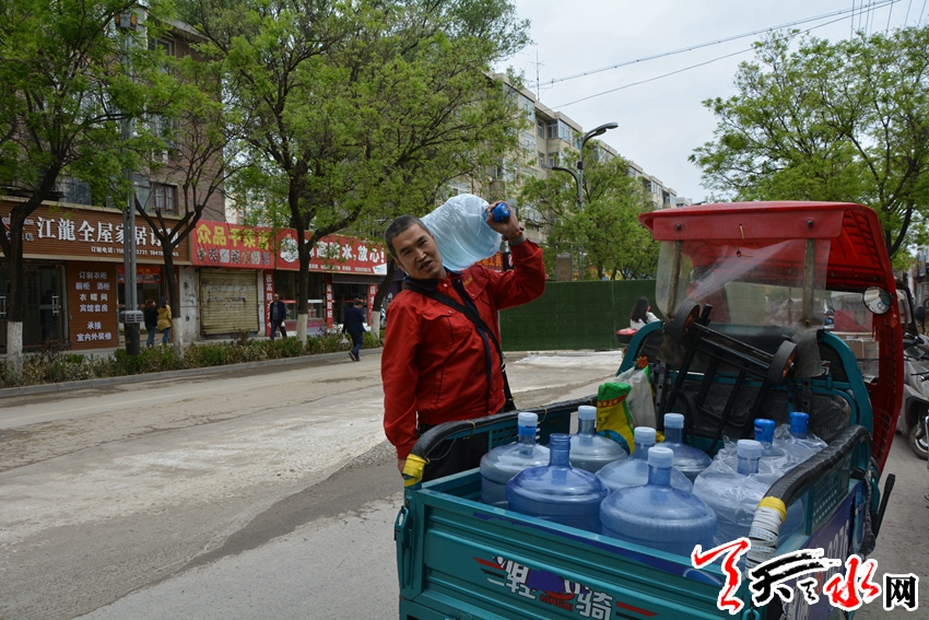4月28日上午八点多,送水工刘继军一天的工作已经开始了。